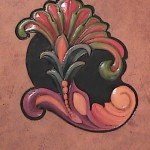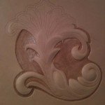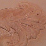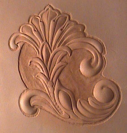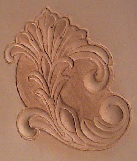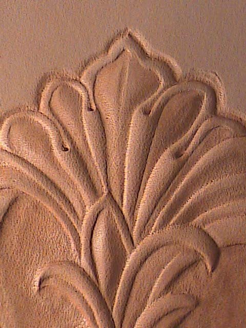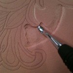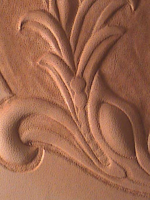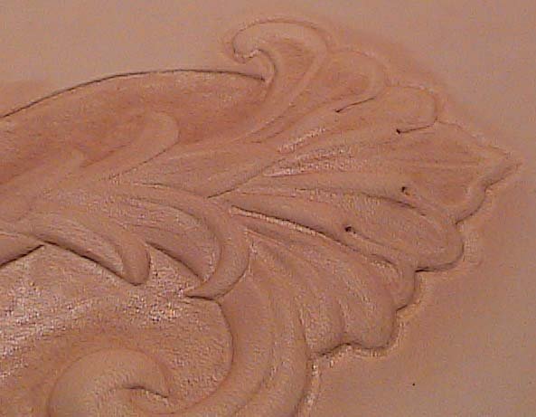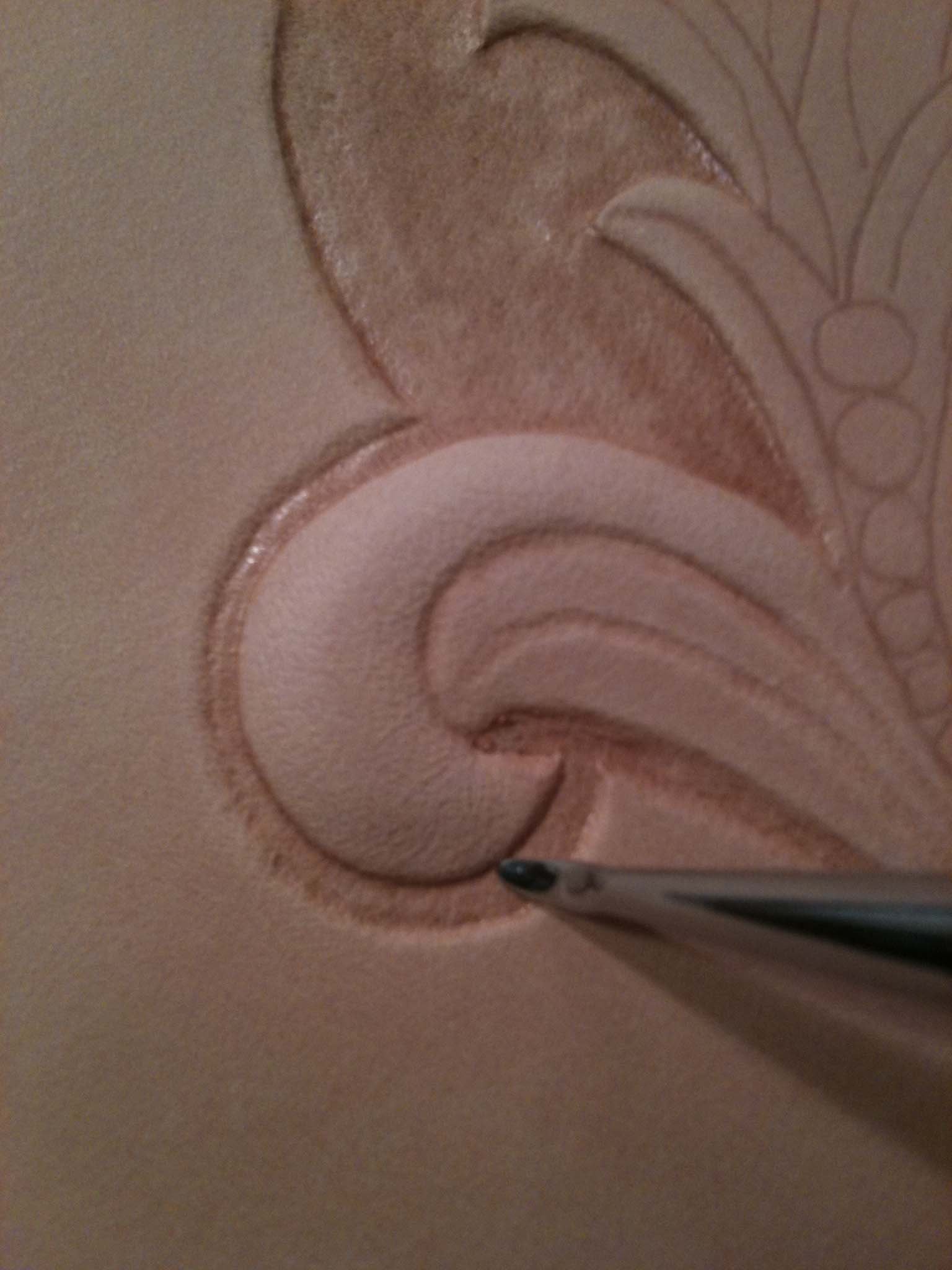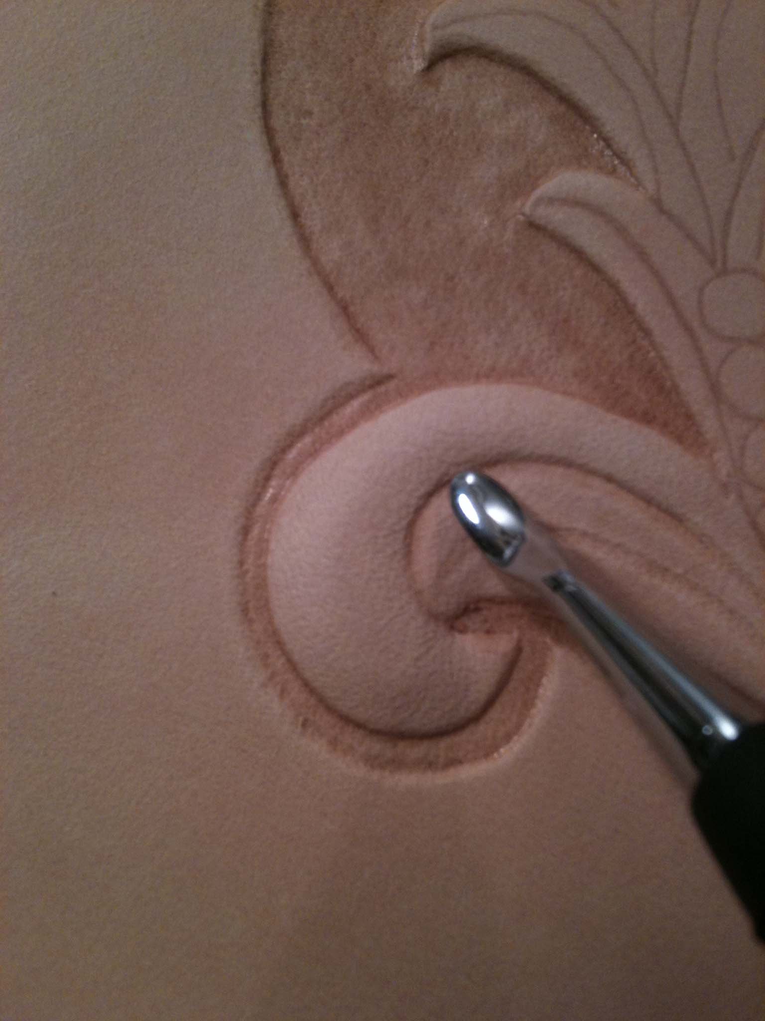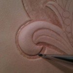 - The rest of the designs outer contour is marked from the grain side, following the outline of the design and flattening at the same time, the surface of the leather that surrounds the design, to do this, use the spoon-end modeler with a medium-round tip.