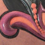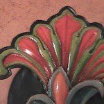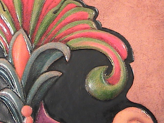 - Now continue working the repoussé from the flesh side. Work on each of the areas between the depressions separately following the design in such a way that the central section will have the highest relief, while its sides will have less, decreasing toward the outside. The work always follows the sinuous shape of the design. Use a modeler with a small ball point.