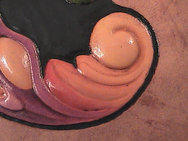 - Outline the interior lines with a round spoon-end modeler, pressing firmly on the grain side over the needed areas.