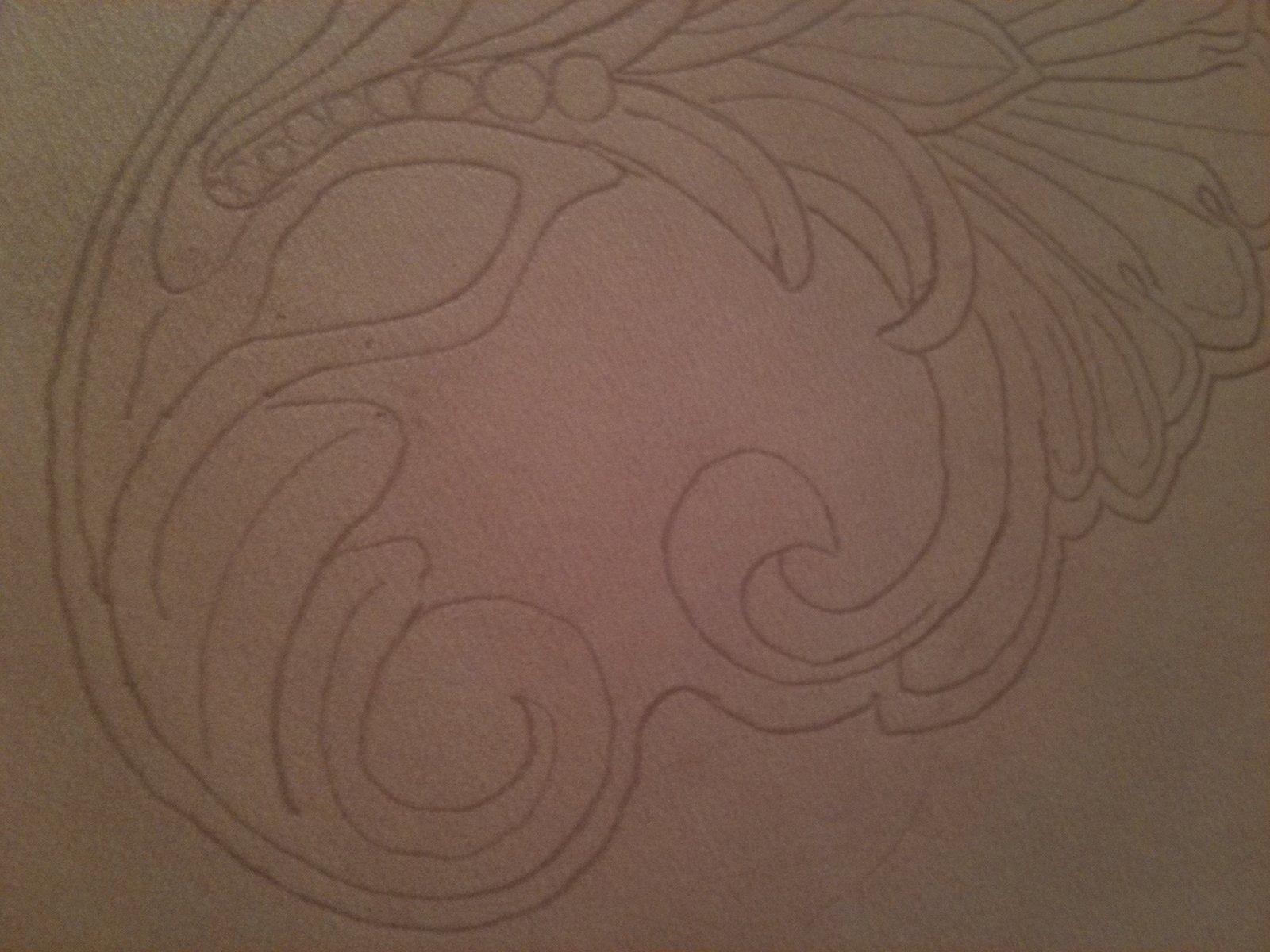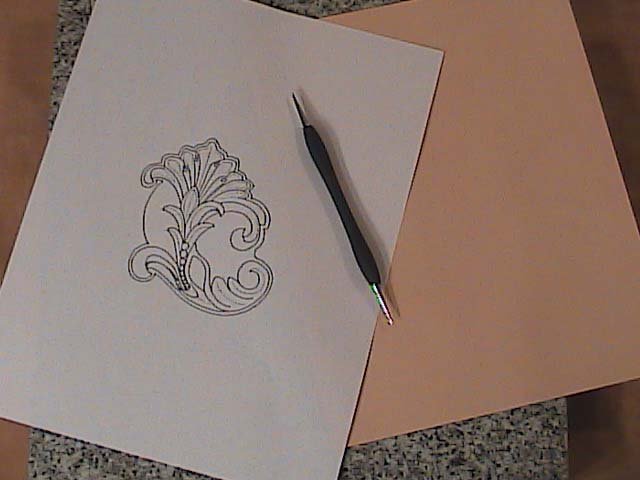 - Transfer the design to the grain side of the leather by placing the design paper down on the dampened leather, then trace over the entire design with a stylus to the grain side by applying sufficient force to make an distinct impression on the leather.