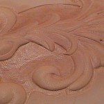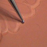 - Mark the small details of the design on the grain side, using the narrow point-spade end modeler and pressing firmly over the areas with very narrow spaces.