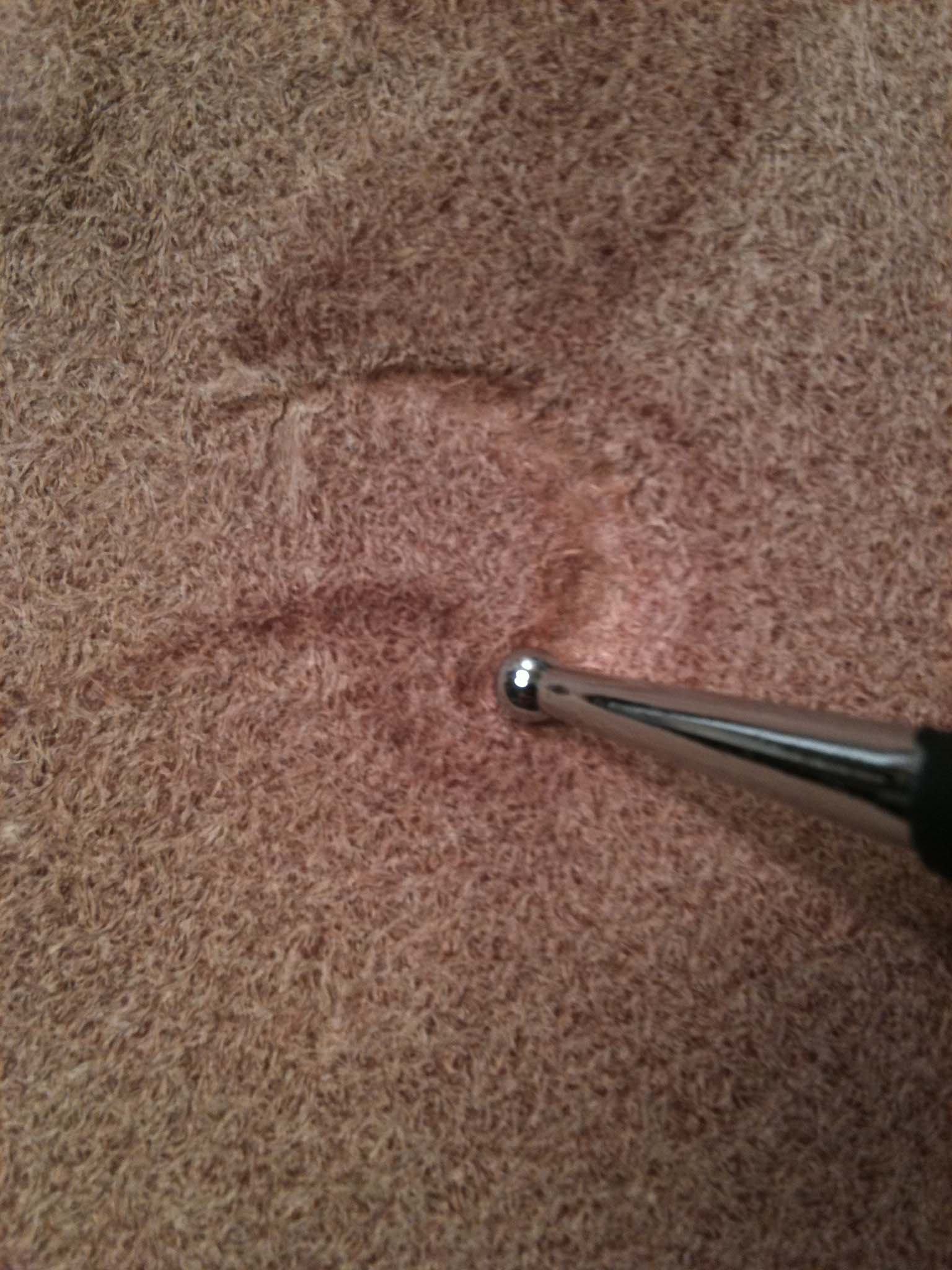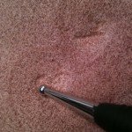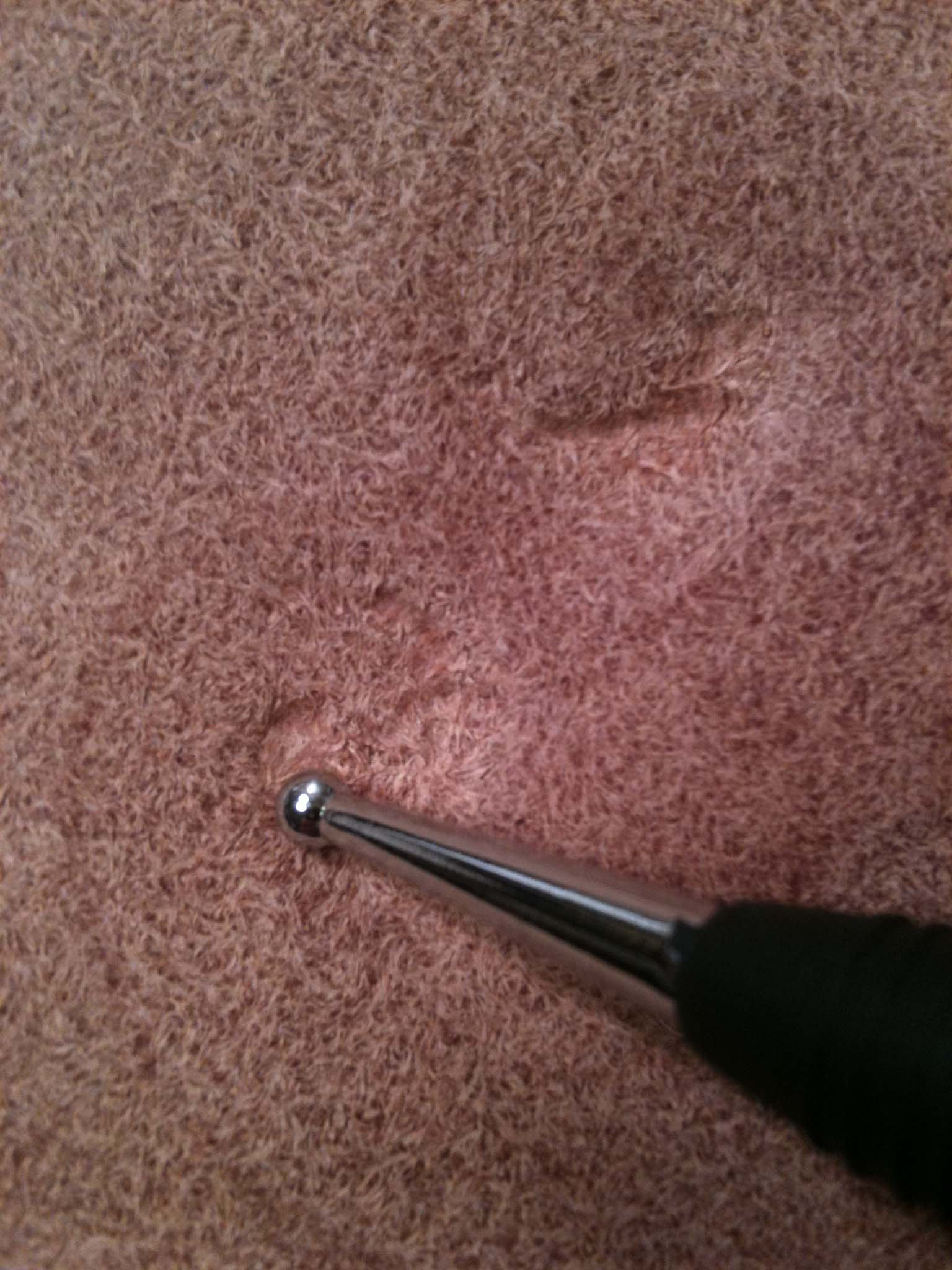 - These lines must now be impressed more deeply into the leather. To do this place the leather grain side up, on a slab of marble, glass, or any hard working surface. Holding a small ball-end modeler as you would a pencil, increasing the pressure as you go over the outline of the design several times until the lines are depressed to the desired depth. Be sure to keep the depth of the depressed lines uniform. This should give a clear outline of the design on the flesh side. If water oozes up behind the modeler, let the leather dry a little. If the leather is, too damp it will not hold an impression well. If the modeler tends to scratch or break the surface of the leather, dampen the leather lightly on the grain side with a sponge. Dry leather will not take a good impression.