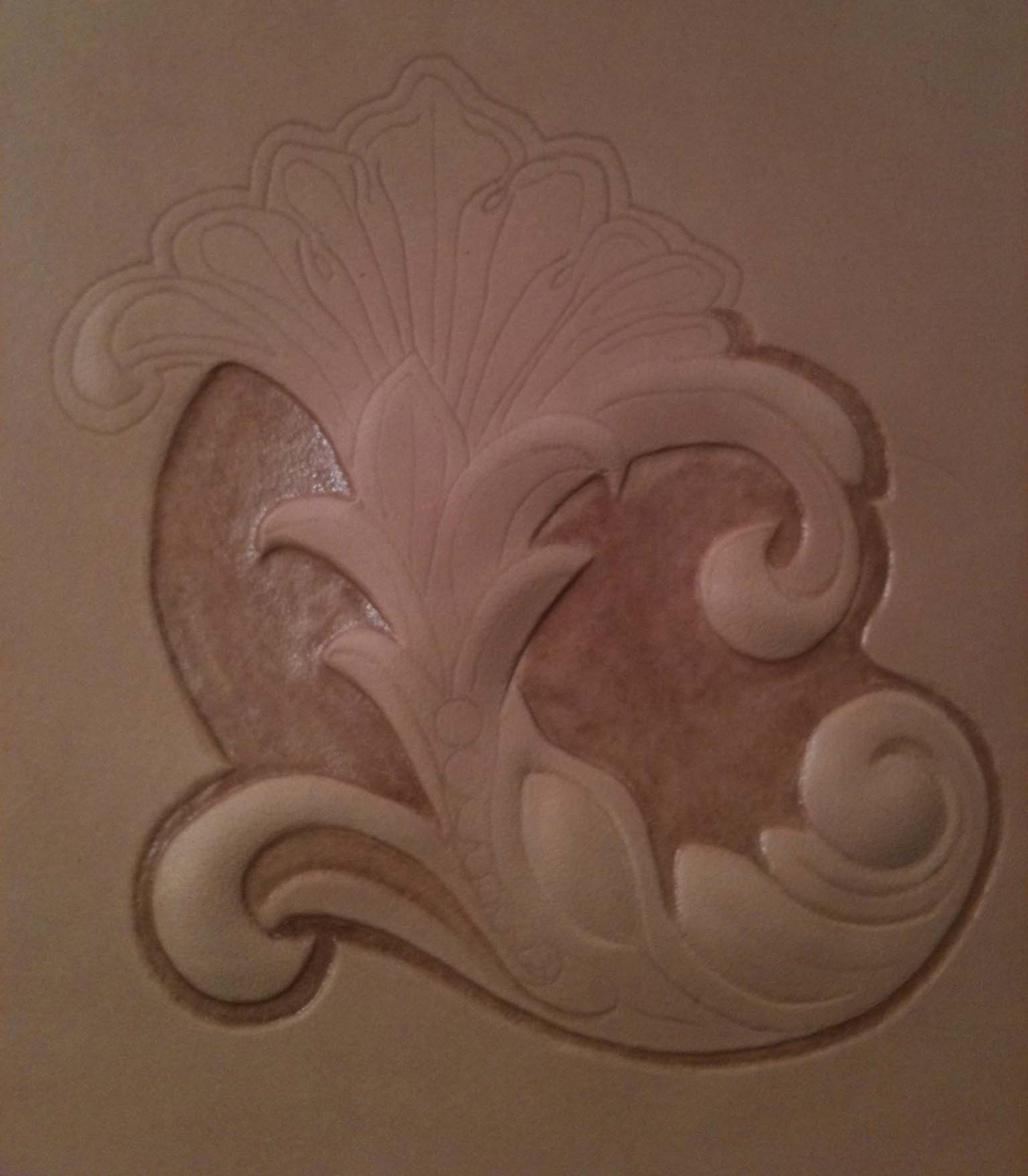 - The process continues by working both sides of the leather alternately, using different tools until the desired figures are achieved. To get good results with this technique, the leather must be somewhat flexible; therefore, it may be necessary to re-dampen the leather several time during the process.