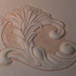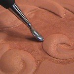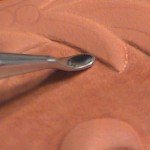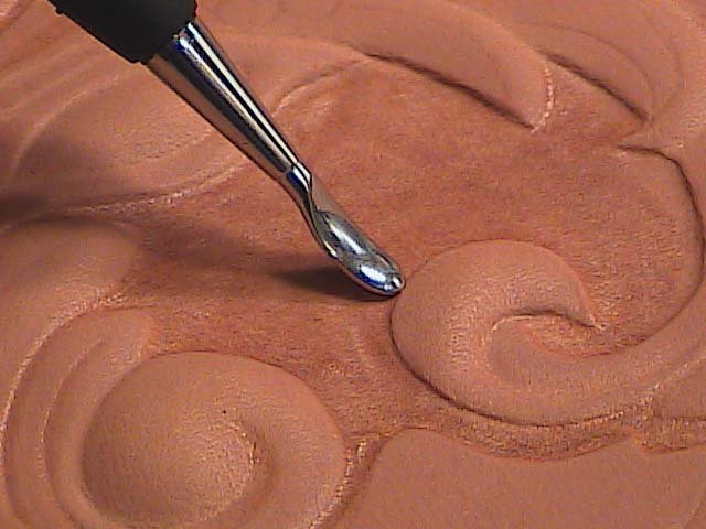 - Mark depressions of the design, outlining them with a spoon-end modeler to give it volume. The central depression of the design is deeply marked, while adjacent depressions are modeled from the inside out. This should give the piece a greater feeling of volume.