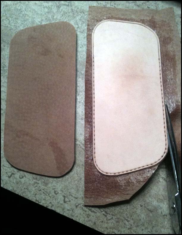 - Place Pattern on the leather, trace around pattern with a stylus or awl.