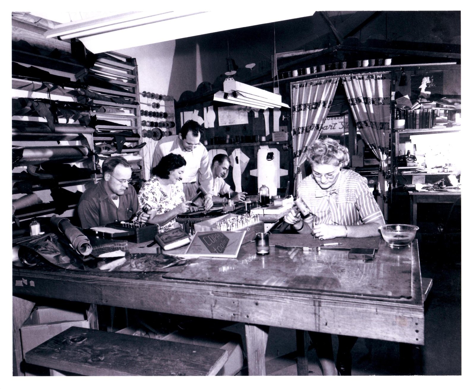 Jim Gick initially discovered a love for crafting when visiting the USO while serving in WWII. After the war, he was so enthralled with producing handmade projects that he and his brother-in-law, Al Pauly, opened the Pacific Model Supply in Southern California in 1947. As interest in the business grew, the store expanded in to the Pacific Arts & Crafts in 1950. Here they taught leathercraft, copper tooling, plaster painting, model airplanes and cars, crepe paper, and more. The classes were very popular, often filling the store with eager onlookers wanting to learn. Even with the addition of a ceramic studio and a complete wood shop, leathercraft still accounted for 50% of the business.