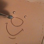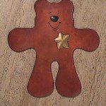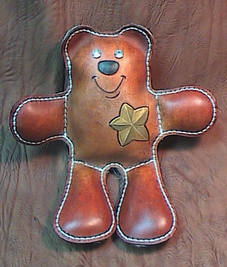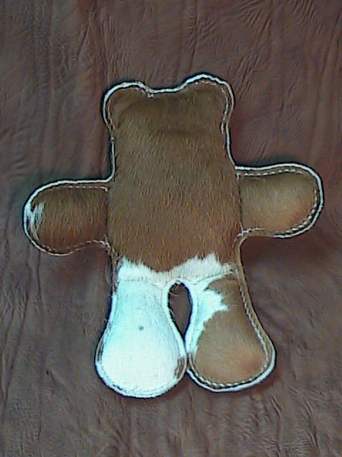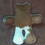 Using the pattern, I made a cardboard template for future uses; this is great if you want to make multiple bears at the same time. Place the template on the flesh side of the leather you are going to use for the bear. Remember to flip the template over when you trace around for the back piece. Once you have the pattern transferred to the leather, cut the pattern out with leather shears or craft-knife.