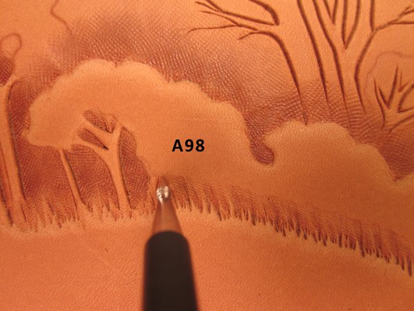 Once I had the bushes and small trees done, I started working my way forward to the grass covered hill. Starting at the top with the A98 tilted so as the heel of the tool was not making much of an impression. When doing something like grass I try not to be even in the force I strike the tool or in the spacing of the impressions. The more irregular the better it tends to look in the end.