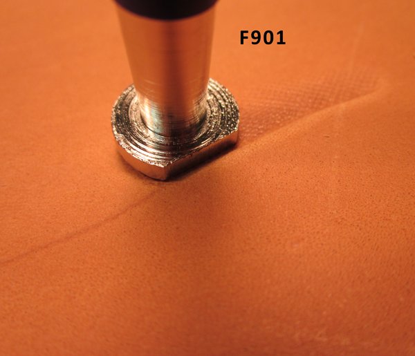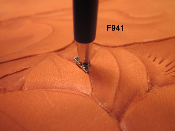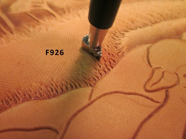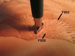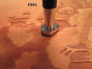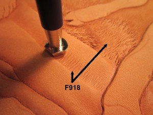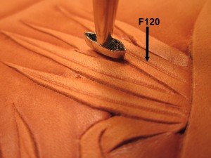 Once I had the outline beveled down, I went back over those areas with the F901 to cover a larger area and work my way out from the cut line. As I walked the tool out I reduced the amount of force I was striking the tool to a light tap to blend the texture with the un-tooled background areas.