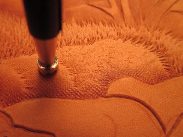 *Tool Tip – The leather needs to be almost dry when using background matting tools. If matted while damp, the surface of the stamp can burnish the leather.