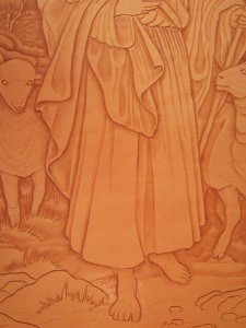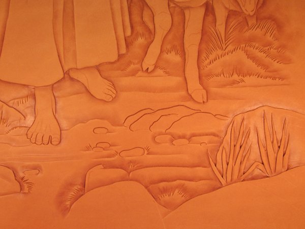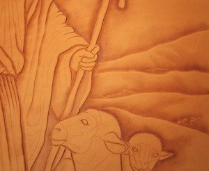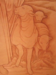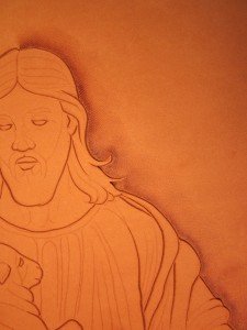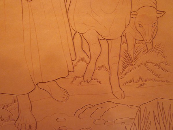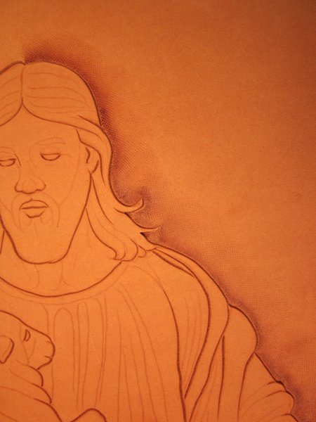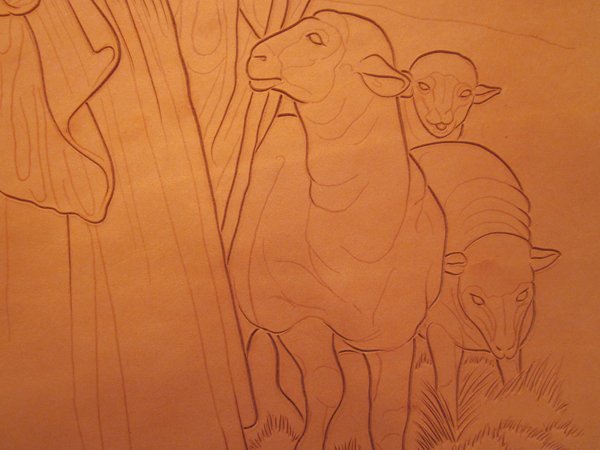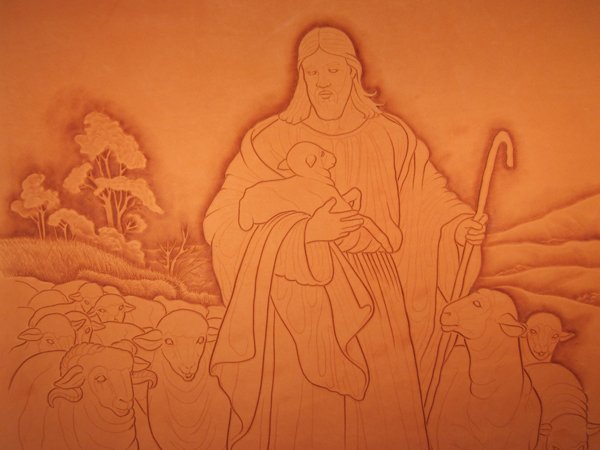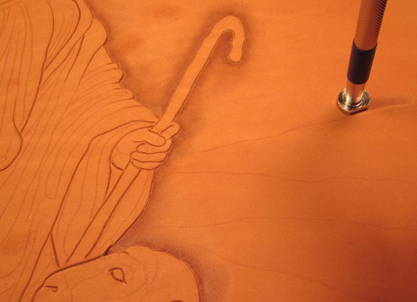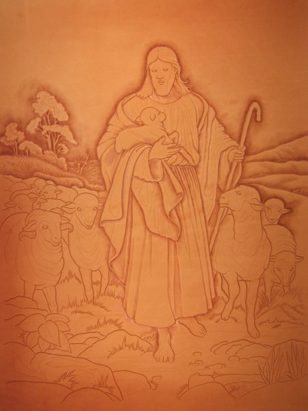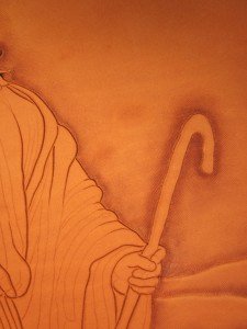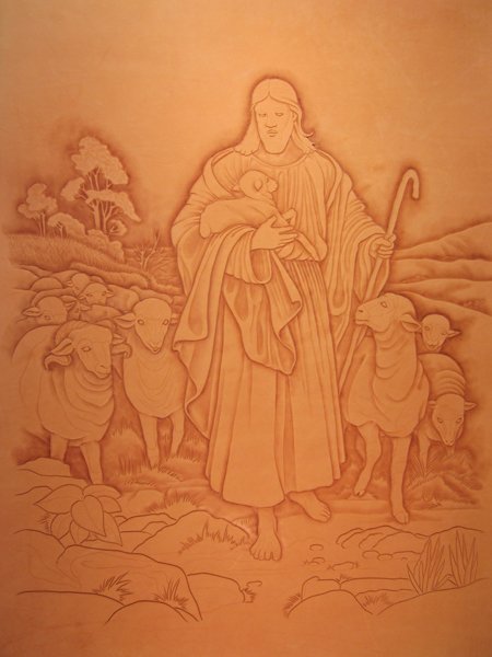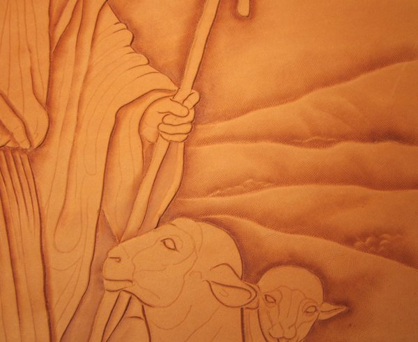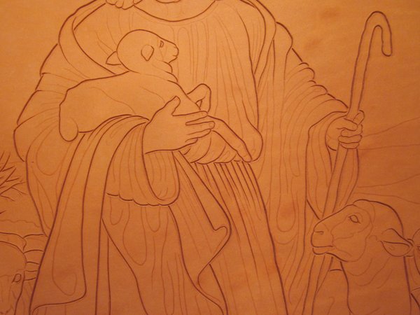 Then we received a question from a leathercrafter in Oklahoma who had downloaded, carved and tooled “The Good Shepherd” pattern from Leathercraftlibrary.com. The person wanted to know if we had any instructions on how to color the project. We looked through the archives and could not find any specific instructions or color photos of a completed project. Problem solved.