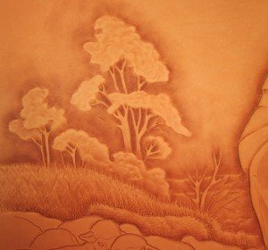 4. Using a M884 Matting Stamp, matte the area to the left of the column.