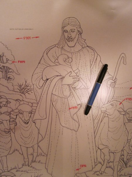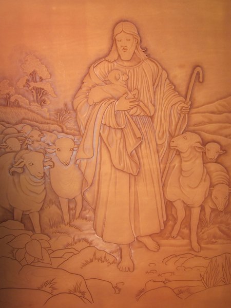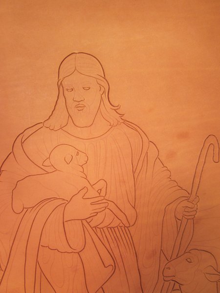 Well I was able to finish the background, and most of the rough beveling of Jesus today.