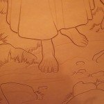 Once all the cut lines have been beveled, it is time to move on to the “dotted” lines of the pattern. By using the figure bevelers to bevel an un-cut line, the result will be a less defined and more rounded edge. This effect lends itself well to the folds here.