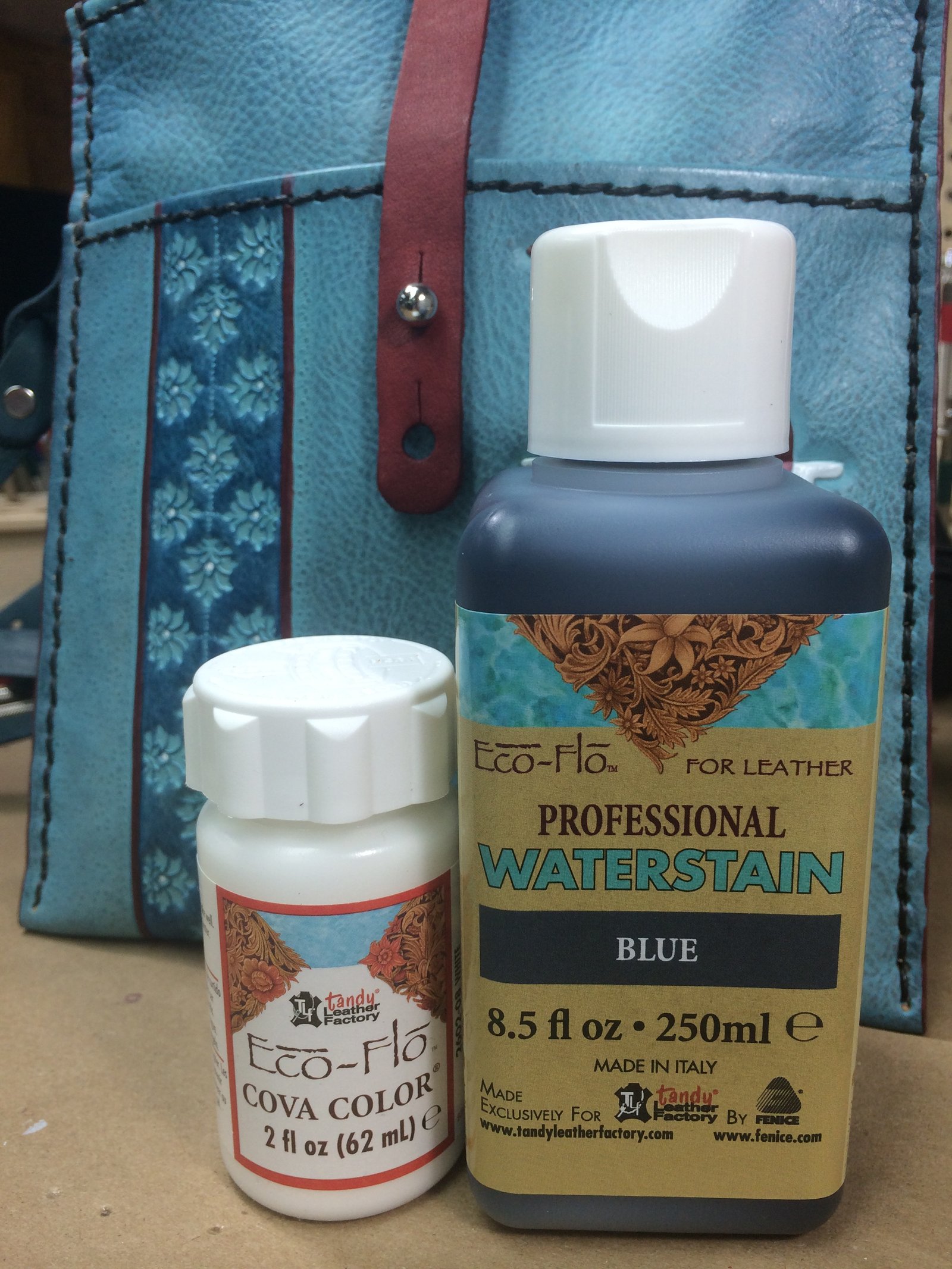 Last week I was asked to give a demonstration on coloring leather with our Eco-Flo Leather Dyes and Cova Colors at Oklahoma City’s GRAND RE-OPENING of their new store on Thursday, April 5th. Great! Well, until I realized I needed something to color besides a blank piece of leather.
