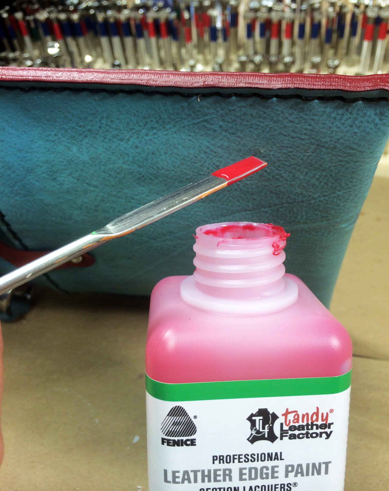 7. Using a Crafool Edge Paddle, apply the Professional Edge Paint where the leather meets on the side. Apply multiple coats for a smooth, rounded finish.