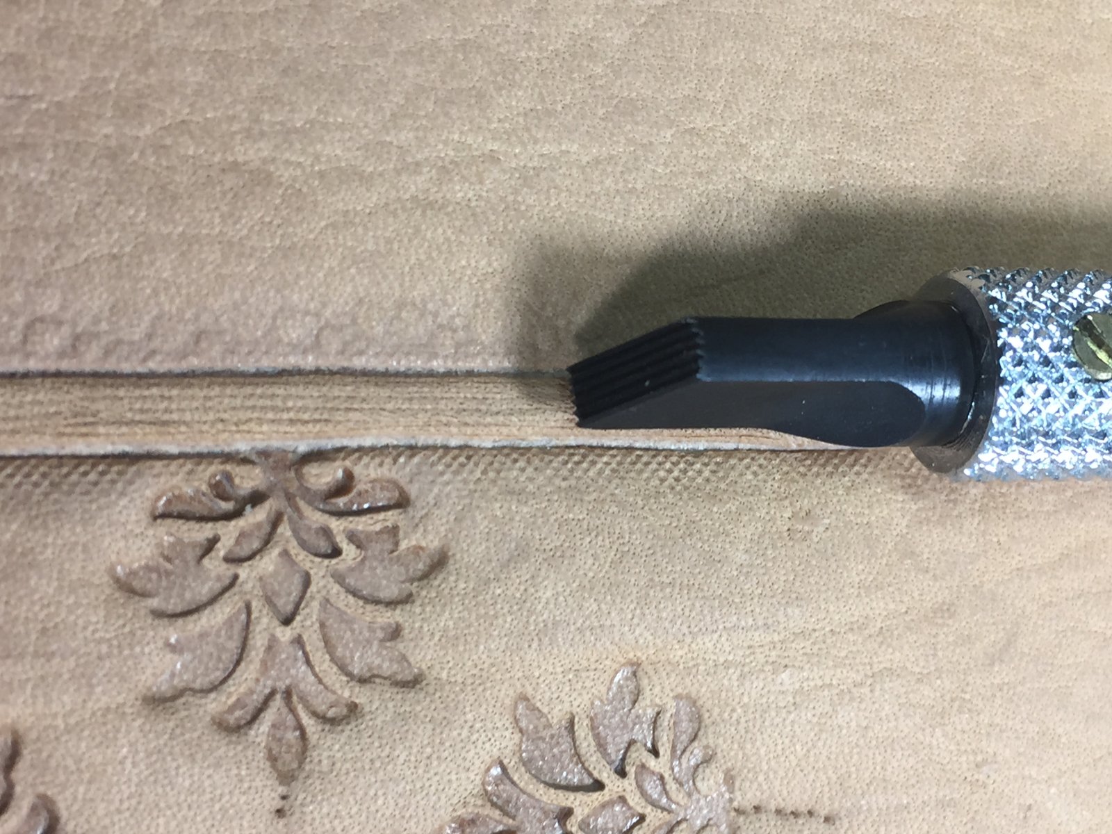 5. (Optional) Using a Craftool Hair Blade Tool, run down the centers of the 1/8 inch wide columns to add additional texture to your project.