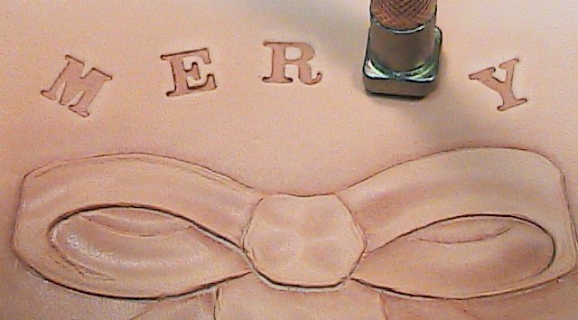 - To cut out letters, snow and interior of wreath…use Craftool filigree blades. (Practice on scrap leather.)