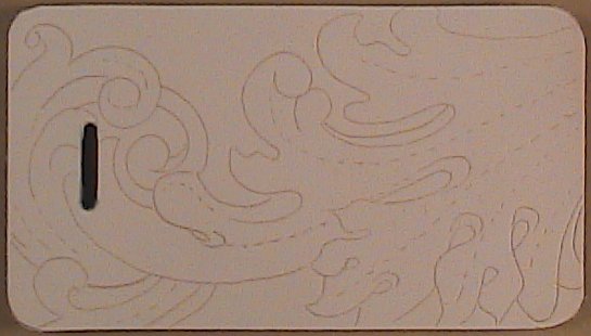 - Center the tracing of the tooling pattern on the damp leather. Transfer the design to the leather using the stylus. Push just hard enough to make a clear impression.