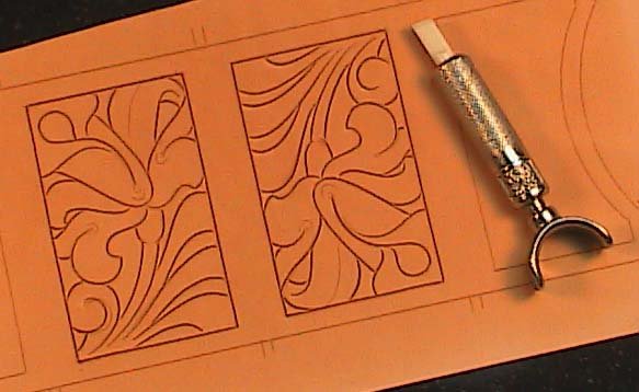 Be careful not to draw the lines past where they need to stop. Once the tracing is complete, remove the tracing film and go over all the lines making them deeper and more pronounced. If there is to be tooling, this is the time to use the swivel knife to cut in the design as I have done here (Fig. 2).