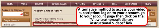 Alternative method to access your video subscription: log on to your account, go to your account page then click on the “View Leathercraft Library